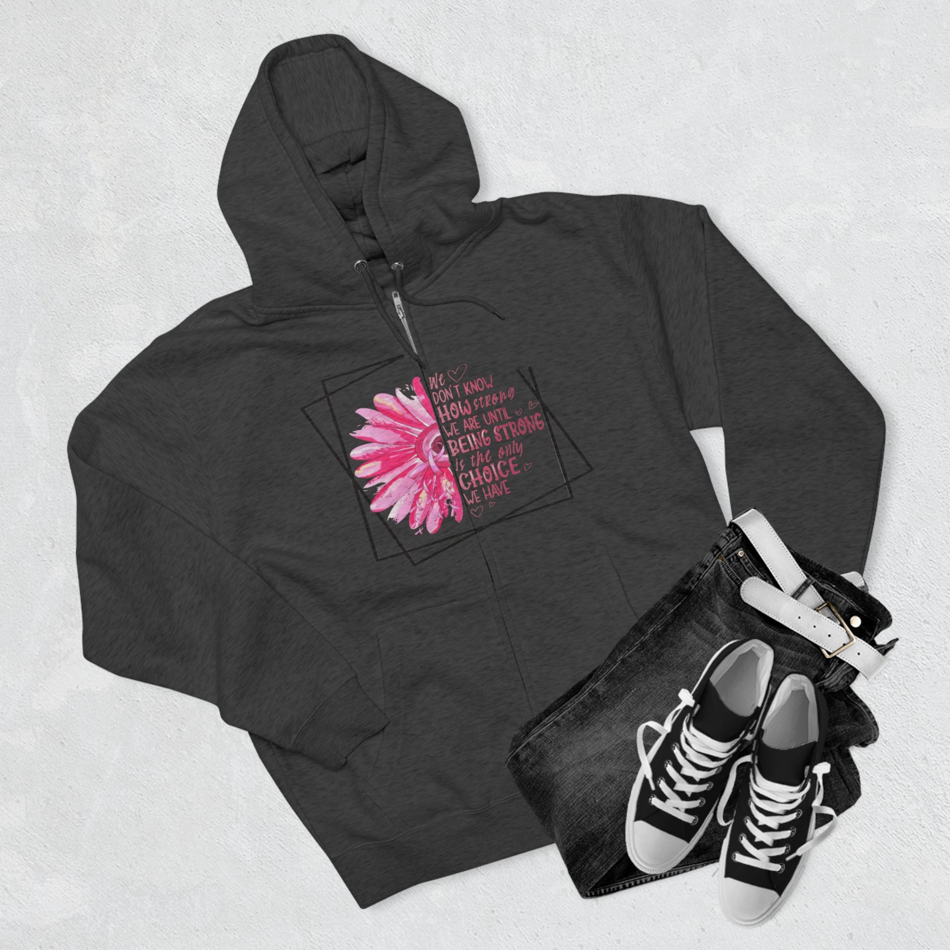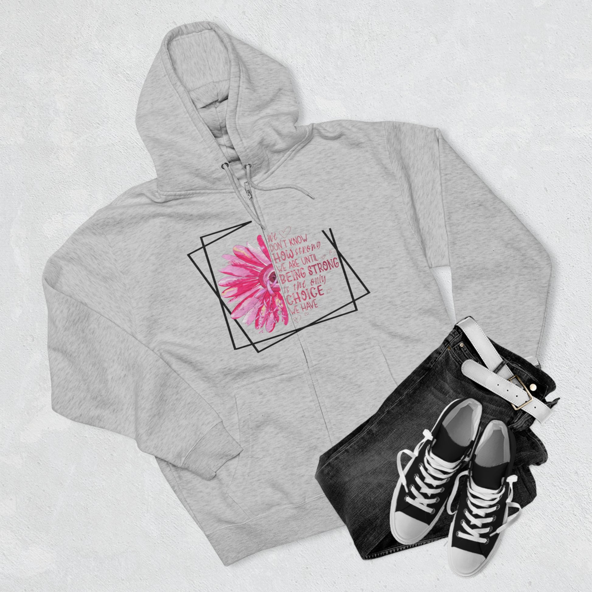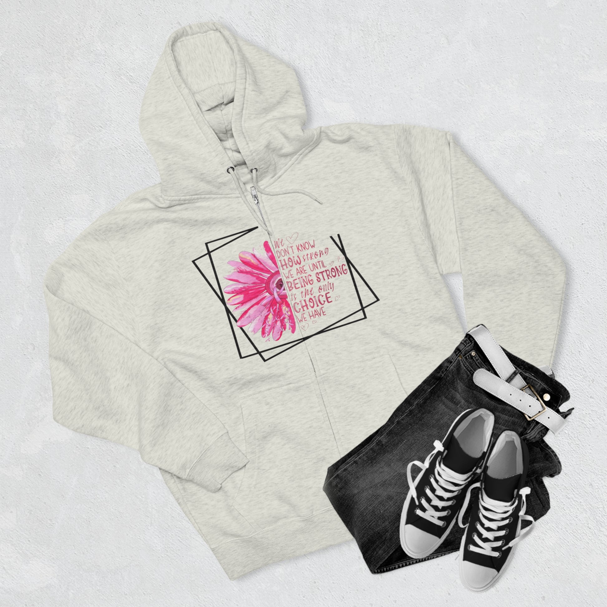 Breast Cancer How Strong We Are Unisex Premium Full Zip Hoodie